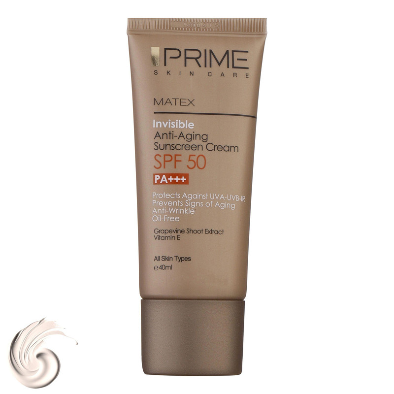 کرم ضد آفتاب و ضد چروک بی رنگ پرایم مدل Matex Colorless SPF50 مناسب انواع پوست حجم 40 میلی لیتر