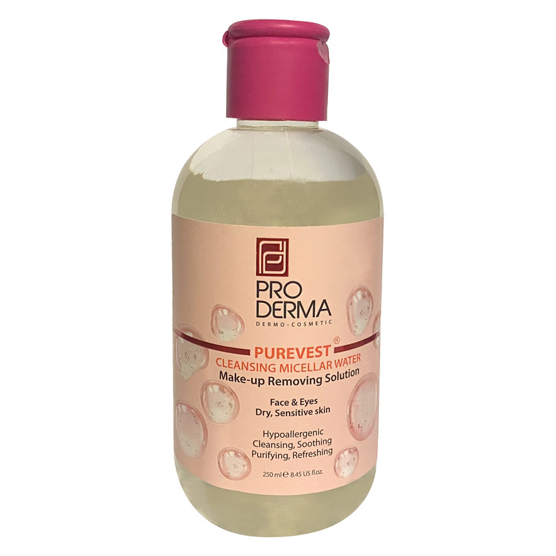 محلول پاک کننده آرایش پرودرما مدل Purevest حجم 250 میلی لیتر