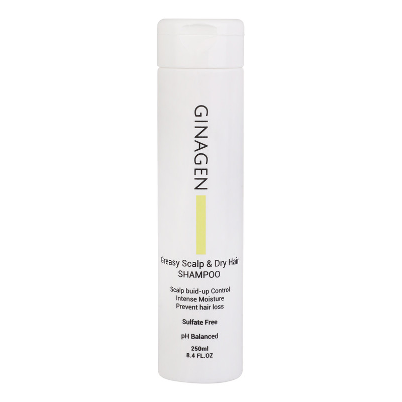 شامپو فری سولفات ضد ریزش مو ژیناژن مدل PH Balanced مناسب پوست سر چرب و ساقه مو خشک حجم 250 میلی لیتر