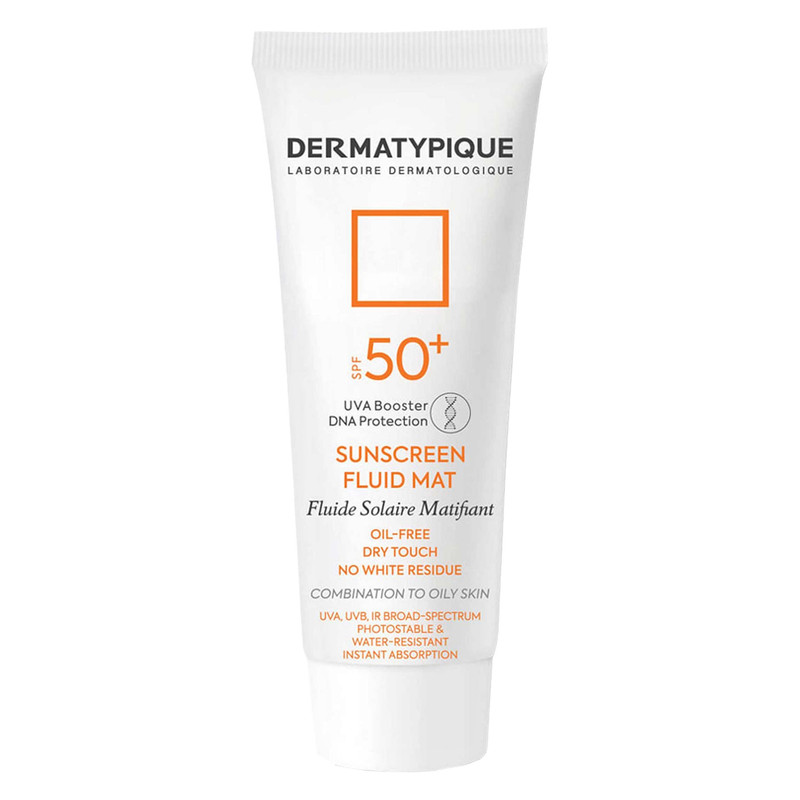 فلوئید ضدآفتاب بیرنگ درماتیپیک SPF50 مدل Fluid mat، مناسب پوستهای چرب و مختلط، حجم 40 میلیلیتر