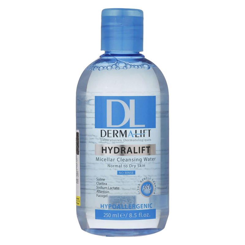 محلول پاک کننده آرایش صورت درمالیفت مدل HYDRALIFT مناسب برای پوست های معمولی و خشک حجم 250 میلی لیتر