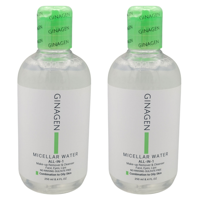 میسلار واتر ژیناژن مدل all in 1 مناسب پوست های چرب حجم 250 میلیلیتر مجموعه دو عددی