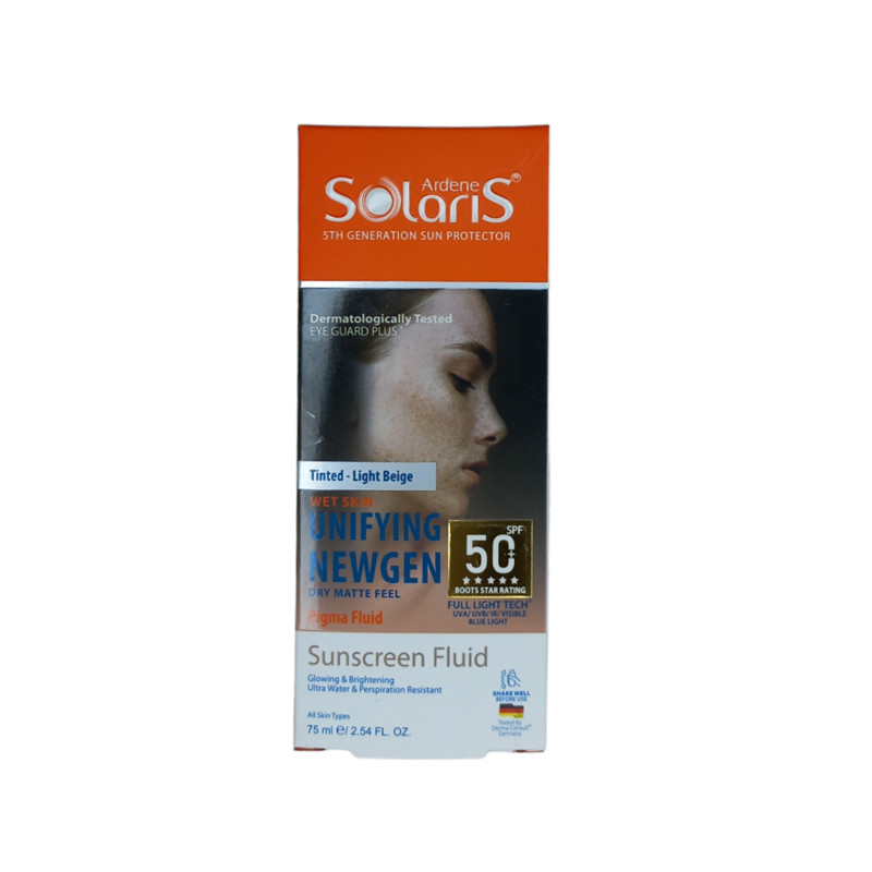 لوسیون ضد آفتاب رنگی نیوژن سولاریس آردن اس پی اف 50 محصولی از برند ایرانی آردن است. این محصول یک ضد آفتاب رنگی فاقد چربی بوده که دارای دو رنگ بژ روشن و بژ طبیعی می باشد. این ضد آفتاب، فاقد چربی بوده و برای انواع پوست مناسب است.یکی از مزایای لوسیون ضد آفتاب رنگی نیوژن سولاریس آردن این است که می توانید از آن دور چشم نیز استفاده نمایید. این محصول همچنین بر روی پوست خیس نیز قابل استفاده است بدون اینکه میزان اس پی اف آن کاهش یابد. این ضد آفتاب، دارای تائیده استاندارد پزشکان آلمان بوده و در برابر آب و تعریق نیز مقاوم است.