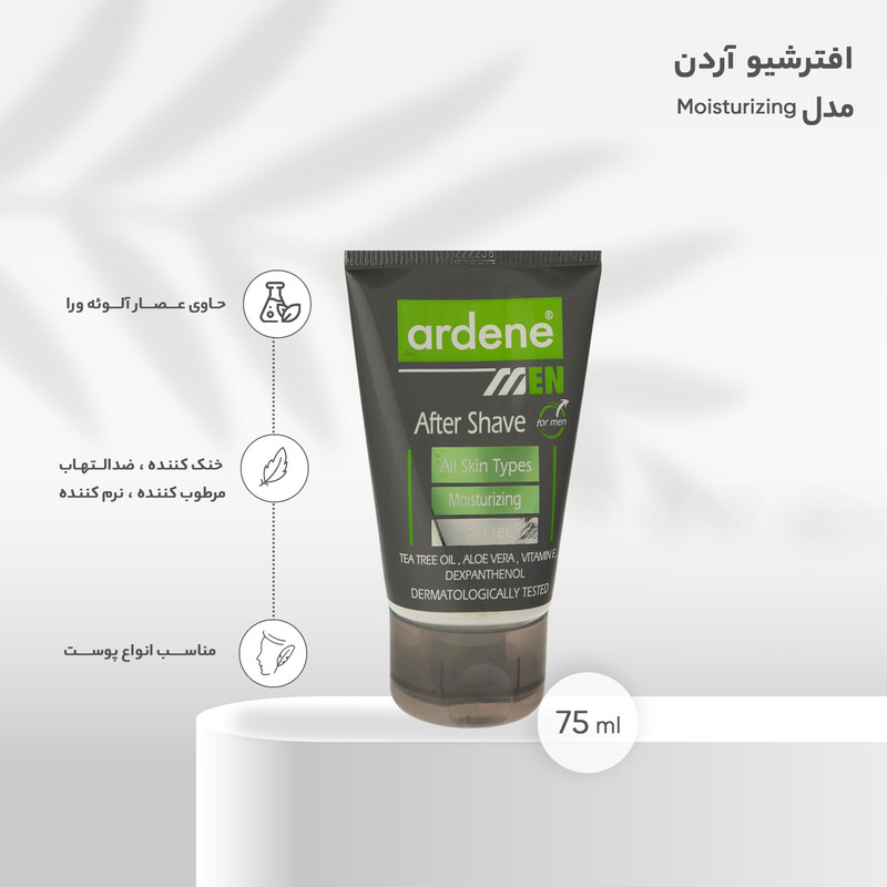 معمولا اصلاح صورت آقایان با سوزش و قرمزی ناخوشایند همراه است. برای بهبود این حالت بعد از اصلاح از افترشیو یا همان لوسیون یا ژل پس از اصلاح استفاده میشود. افترشیو باعث کاهش سوزش و جمعشدن منافذ باز صورت میشود. برند آردن برای بهبود بهتر و سریعتر عوارض اصلاح، افترشیو آردن مدل Moisturizing را در حجم 75 میلیلیتر برای انواع پوست عرضه کرده که بهغیر از داشتن خاصیت نرمکنندگی، تقویتکننده و آرامبخش پوست نیز است. در ترکیبات این محصول از عصاره آلوئهورا و روغن درخت چای استفاده شده است. این دو در ترکیب باهم، این محصول را به الیتامبخش و ترمیم کننده پوست تبدیل کرده و از جوشزدن بعد از اصلاح جلوگیری میکند. همچنین با وجود خاصیت ضدالتهابی آن از بروز قرمزی و التهاب پس از اصلاح و تماس تیغ با پوست، جلوگیری خواهد کرد. وجود روغن درخت چای در این افترشیو سبب شده تا استفاده از آن، در کنترل باکتریهای مولد جوش صورت و همچنین ترشح چربی غدد تاثیرگذار باشد. افترشیو آردن به تنظیم رطوبت پوست کمک کرده و بالانس آب و چربی پوست را کنترل میکند. در کنار تمام این موارد وجود ویتامین E بهعنوان یک آنتی اکسیدان قوی بوده و از خشکی پوست نیز جلوگیری خواهد کرد. این محصول فاقد چربی است و با داشتن عصارههای مفید میتواند پوست شما را التیام بخشیده و درصورت نیاز آن را ترمیم کند. همچنین نرمی پس از اصلاح را برای شما به ارمغان خواهد آورد. افترشیو آردن مدل Moisturizing حجم 75 میلیلیتر میتواند پایان بسیار خوبی برای اصلاح صورت باشد. افترشیو آردن مرطوبکننده پوست و کاهشدهنده التهابات پوست پس از اصلاح است که حاوی عصارههای آلوئهورا و روغن درخت چای است. ویتامین موجود در افترشیو آردن از خشکی و ترکخوردن پوست جلوگیری میکند.
