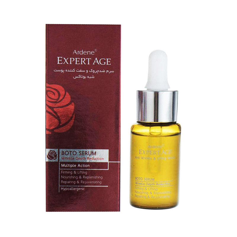 سرم ضد چروک و سفت کننده پوست اکسپرتیج آردن برای استفاده روزانه افراد بالای 40 سال مناسب است و عملکردی شبیه بوتاکس دارد.این محصول ضد چروک قابلیت جذب سریع و نفوذ بالا در پوست دارد و کلاژن سازی و ساخت الاستین پوست را تحریک کرده و به جوان سازی پوست کمک می کند.سرم ضد چروک و سفت کننده پوست اکسپرتیج آردن از پیری پوست جلوگیری کرده و خاصیت ضد چروک قوی دارد و برای استفاده روی پوست صورت و گردن و دکلته مناسب است.این محصول بر پایه کمپلکس کارآمد و موثر Plant Stem Cell است که در ریلکس سازی ماهیچه های صورت موثر است، همچنین این سرم ضد چروک موثر اکسپرتیج آردن به کاهش عمق چروک های عمقی پوست کمک می کند و سبب افزایش سفتی پوست می شود. سرم ضد چروک و سفت کننده پوست اکسپرتیج آردن در درمان قطعی خطوط خنده،اخم و چروک های پنجه کلاغی و اکسیژن رسانی به بافت پوست موثر است و لک های تیره ناشی از افزایش سن را کاهش می دهد.