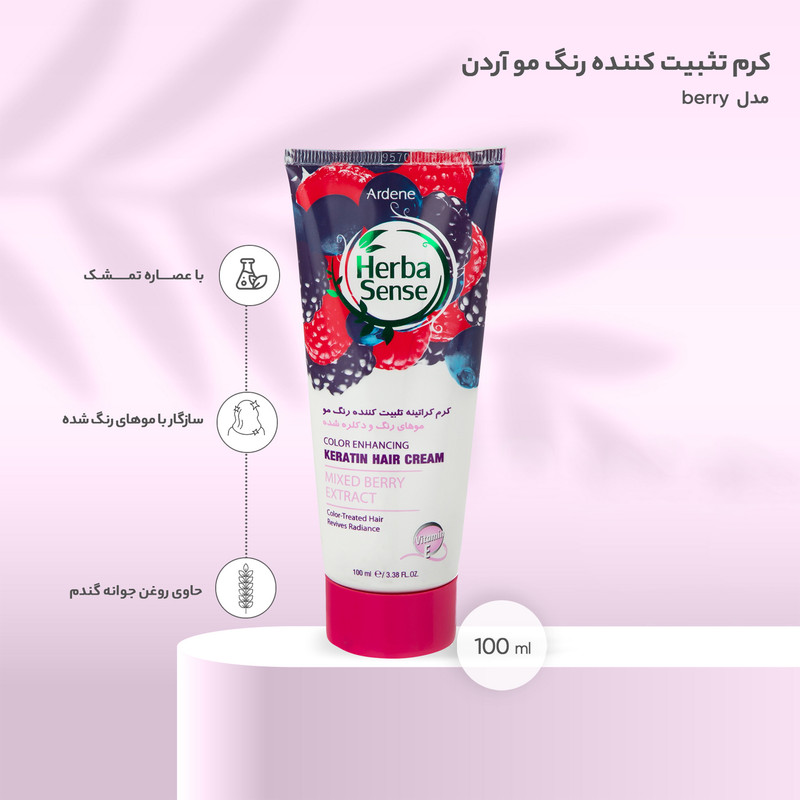 کرم کراتینه تثبیت کننده ی رنگ مو با عصاره توت های وحشی برای موهای رنگ شده و دکلره شده سیستم کامل جلوه گر رنگ مو برای تامین درخشش و رطوبت مو و داشتن رنگ مویی براق و درخشان با نرم کنندگی بالا این محصول بدون نیاز به آبکشی می باشد