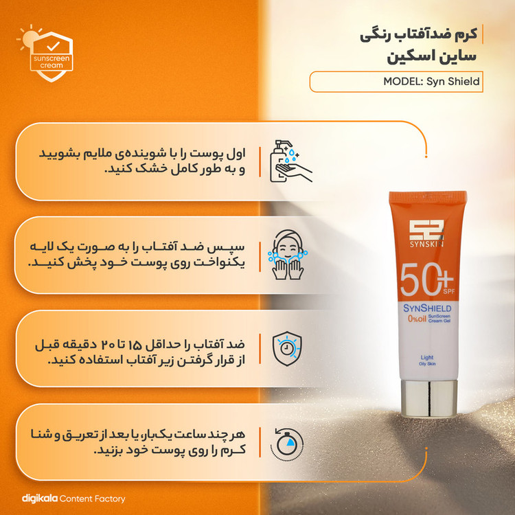 کرم ضد آفتاب رنگی ساین اسکین، SPF 50، مدل Syn Shield، ‌مناسب پوست‌های آکنه‌دار و چرب با حجم 50 میلی‌لیتر، ضد آب، مرطوب‌کننده، محافظت‌کننده در برابر اشعه‌های UVA و UVB، ضد لک و پیری، ویتامین‌های C و E، با ماندگاری 2 ساعته