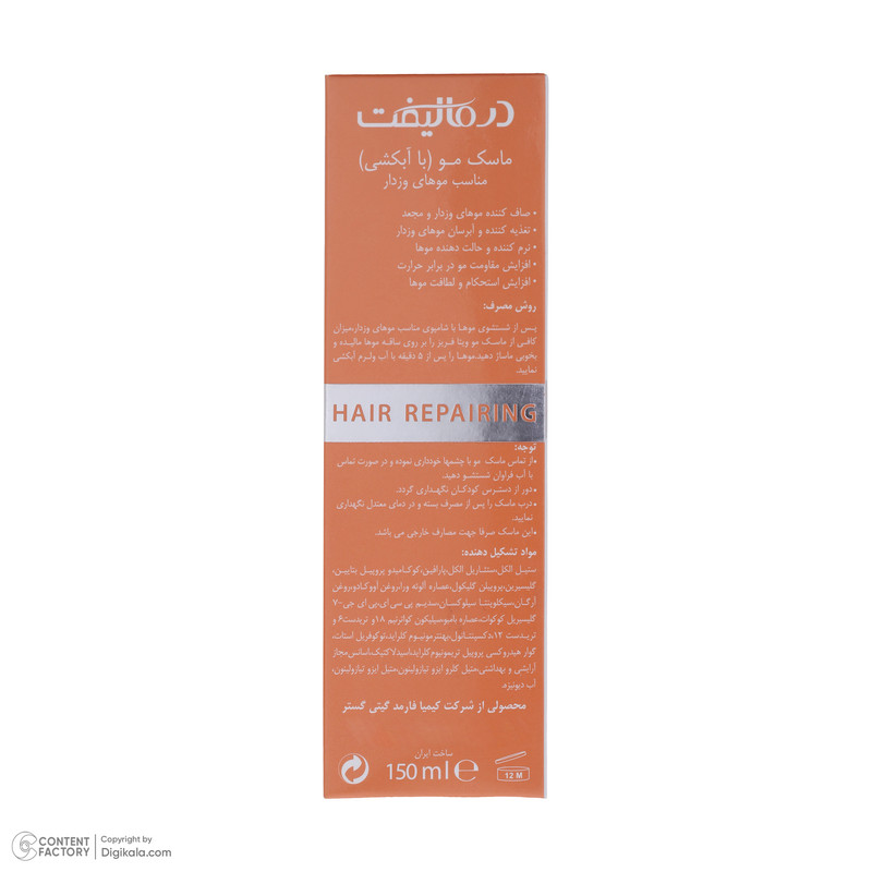 سایر توضیحات : پس از شستـشوی موهـا بـا شامپـوی مناسب موهـای وزدار، میزان کافی از ماسک مو ویتا فریز را برروی ساقه موها مالیده و بخوبی ماساژ دهید.موها را پس از 5 دقیقه با آب ولرم آبکشی نمایید.