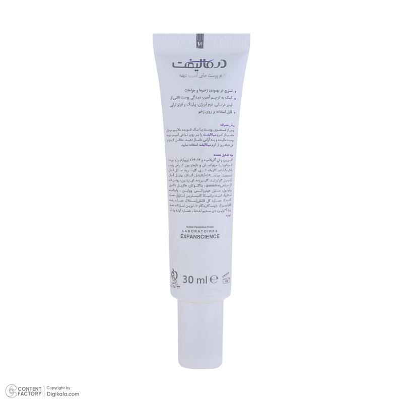 کرم ترمیم کننده پوست صورت درمالیفت مدل سیکالیفت مناسب پوست‌های آسیب‌دیده حجم 30 میلی لیتر