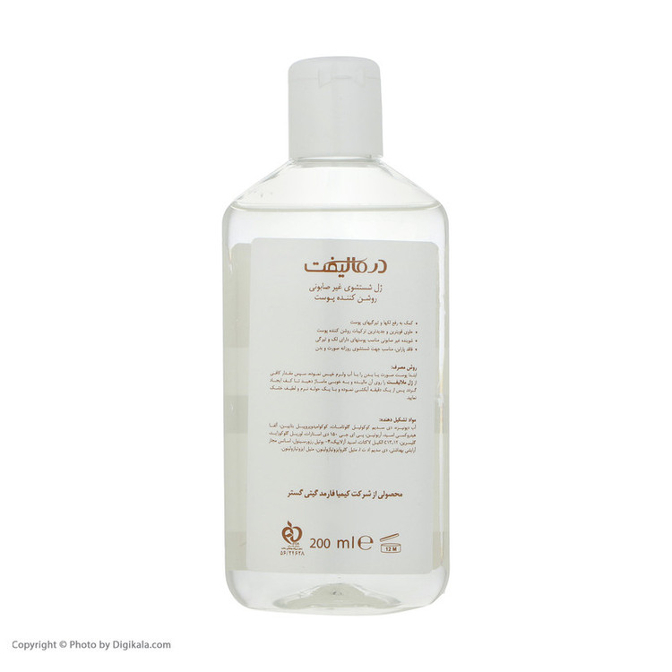 راهنمای استفاده : ابتدا پوست صورت یا بدن را با آب ولرم خیس نموده سپس سیندت ژل درمالیفت را روی آن مالیده و به خوبی ماساژ دهید تا کف ایجاد شود و پس از یک دقیقه آبکشی کنید.