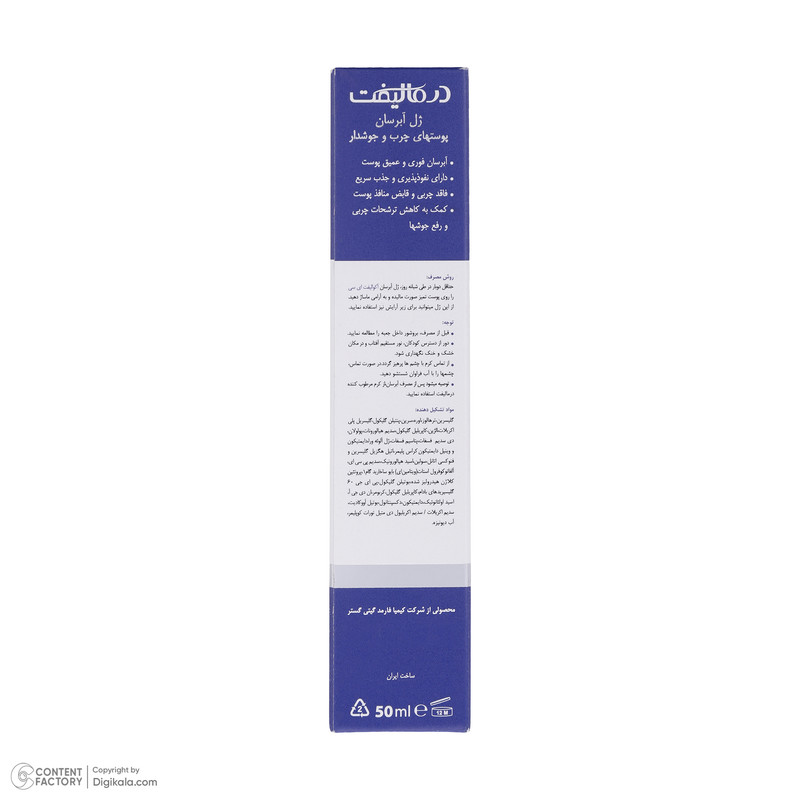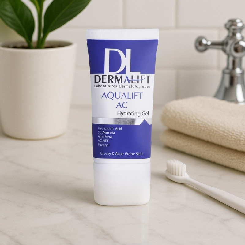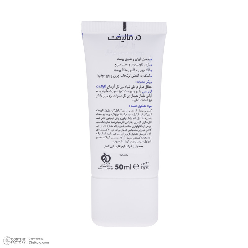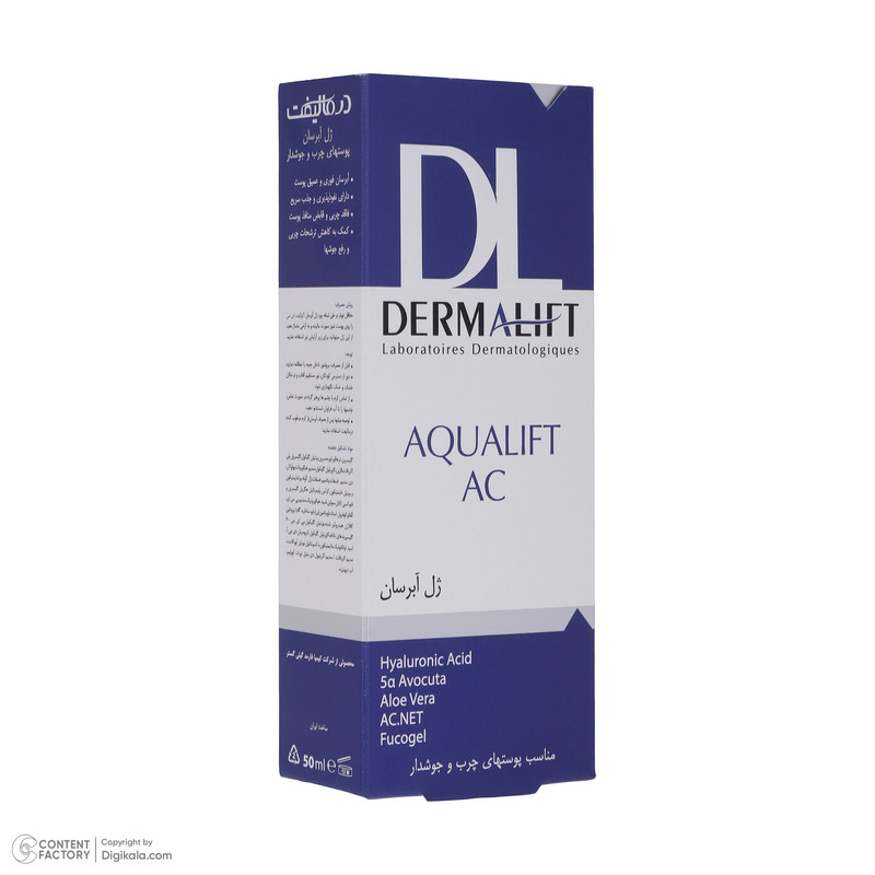 ژل آبرسان صورت درمالیفت مدل AQUALIFT AC مناسب برای پوست‌های چرب و جوشدار حجم 50 میلی لیتر