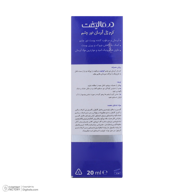 کرم آبرسان دور چشم درمالیفت مدل Aqualift مناسب انواع پوست حجم 20 میلی لیتر