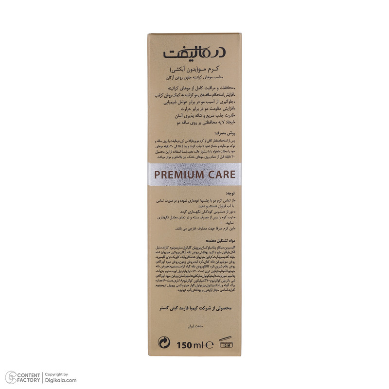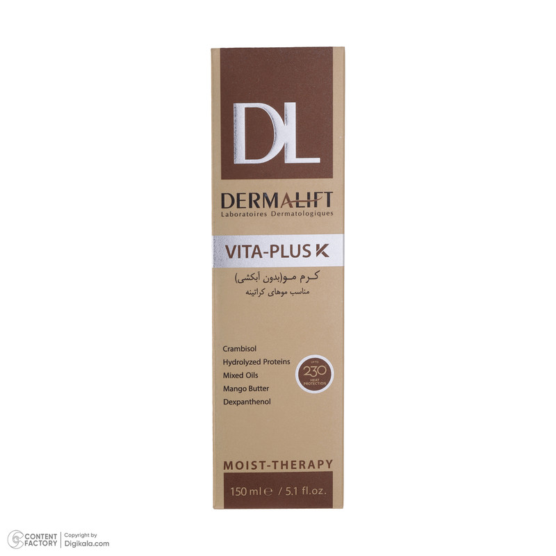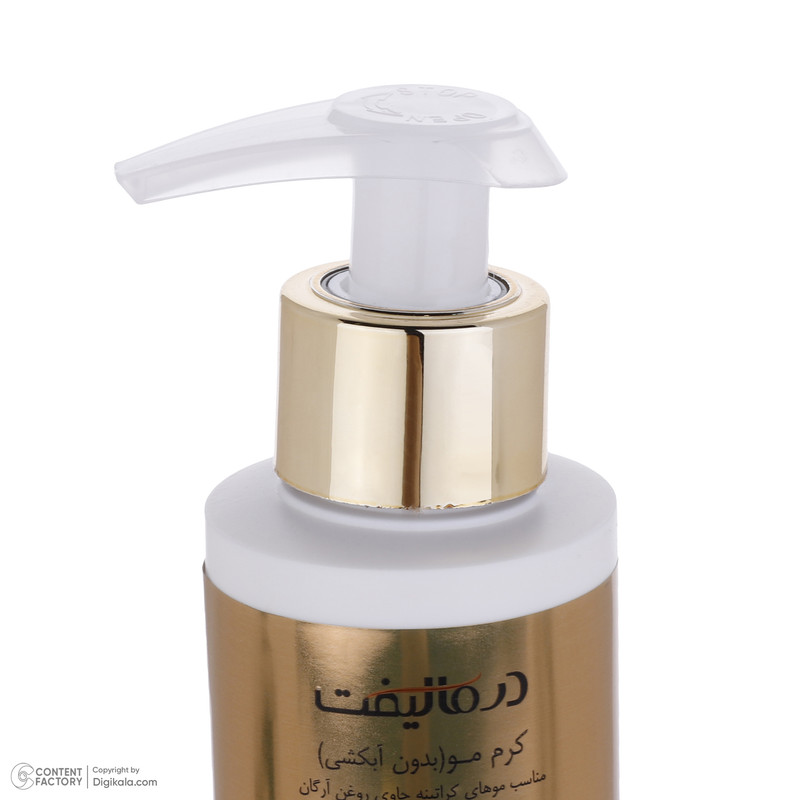 کرم مو بدون آبکشی مناسب موهای کراتینه حاوی روغن آرگان می باشد . باغث افزایش استحکام ساقه مو کراتینه به کمک روغن کرامب و جلوگیری از آسیب مو در برابر عوامل شیمیایی می شود . افزایش مقاومت در برابر حرارت و دارای قدرت جذب سریع و شانه پذیری اسان و ایجاد لایه محاقظتی بر روی ساقه مو می شود.