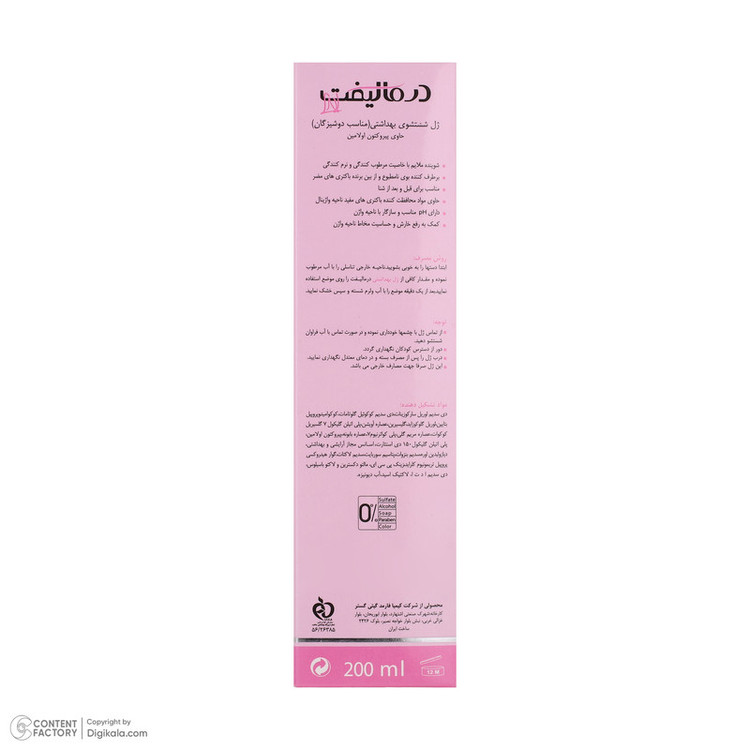 راهنمای استفاده: ابتدا دست ها را به خوبی بشویید.ناحیه خارجی را با آب مرطوب نموده و مقدار کافی از ژل بهداشتی درمالیفت را روی موضع استفاده نمایید.بعد از یک دقیقه موضع را با آب ولرم شسته و سپس خشک نمایید.