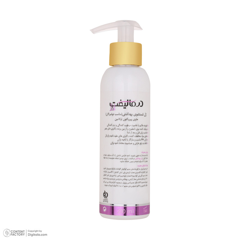 راهنمای استفاده: ابتدا دست ها را به خوبی بشویید.ناحیه خارجی را با آب مرطوب نموده و مقدار کافی از ژل بهداشتی درمالیفت را روی موضع استفاده نمایید.بعد از یک دقیقه موضع را با آب ولرم شسته و سپس خشک نمایید.