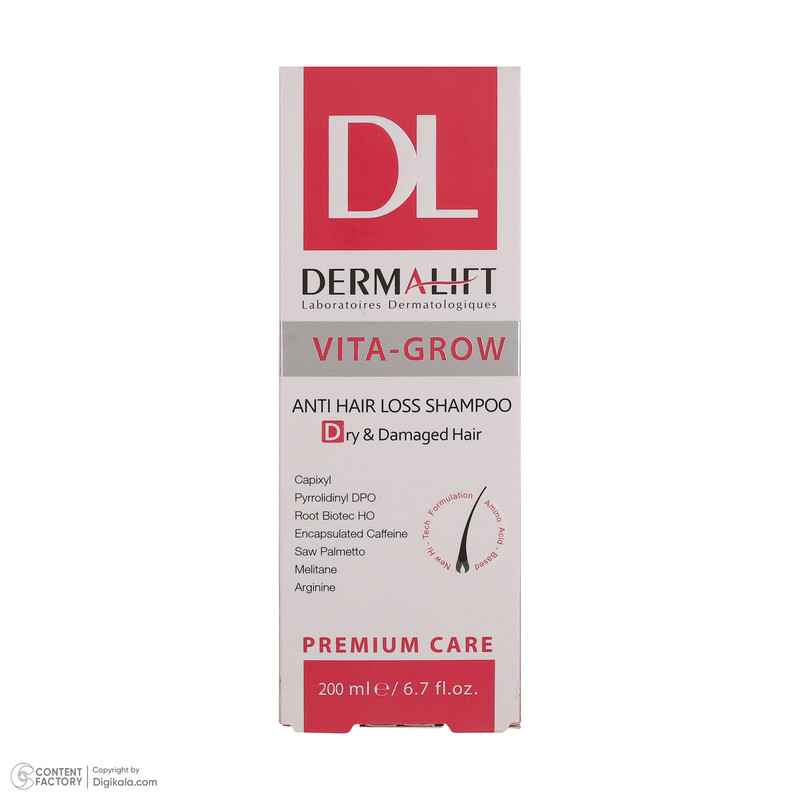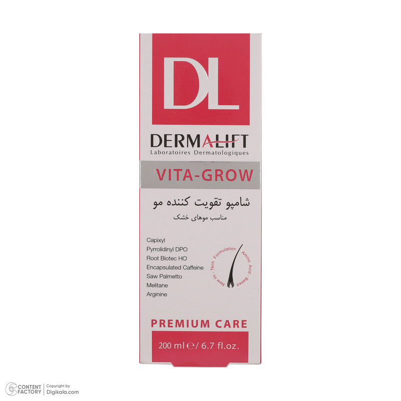 شامپو تقویت کننده مو درمالیفت مدل VITA GROW حجم 200 میلی لیتر