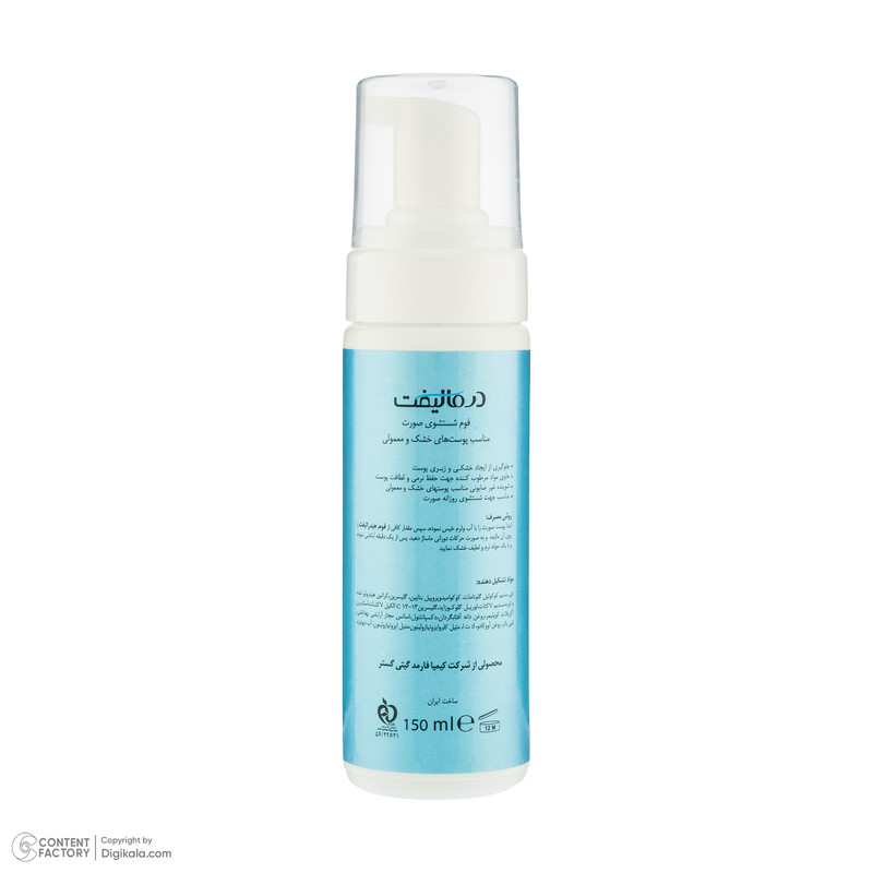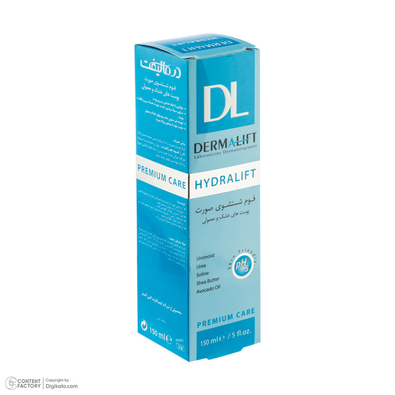 فوم شستشو صورت مرطوب کننده درمالیفت مدل هیدرالیفت مناسب برای پوست های خشک و معمولی حجم 150 میلی لیتر
