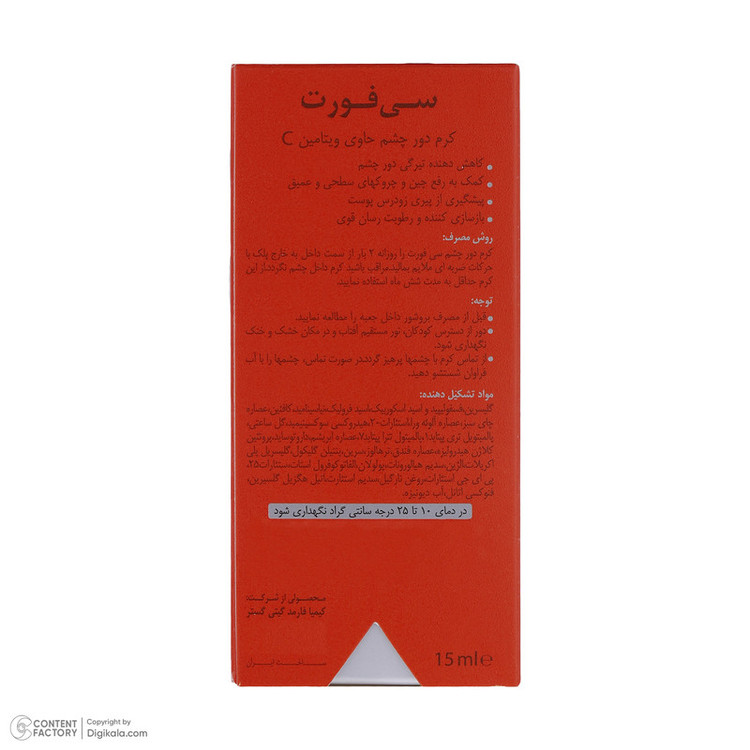 راهنمای استفاده: کرم دور چشم سی فورت را روزانه ۲ بار از سمت داخل به خارج پلک با حرکات ضربه ای ملایم بمالید.