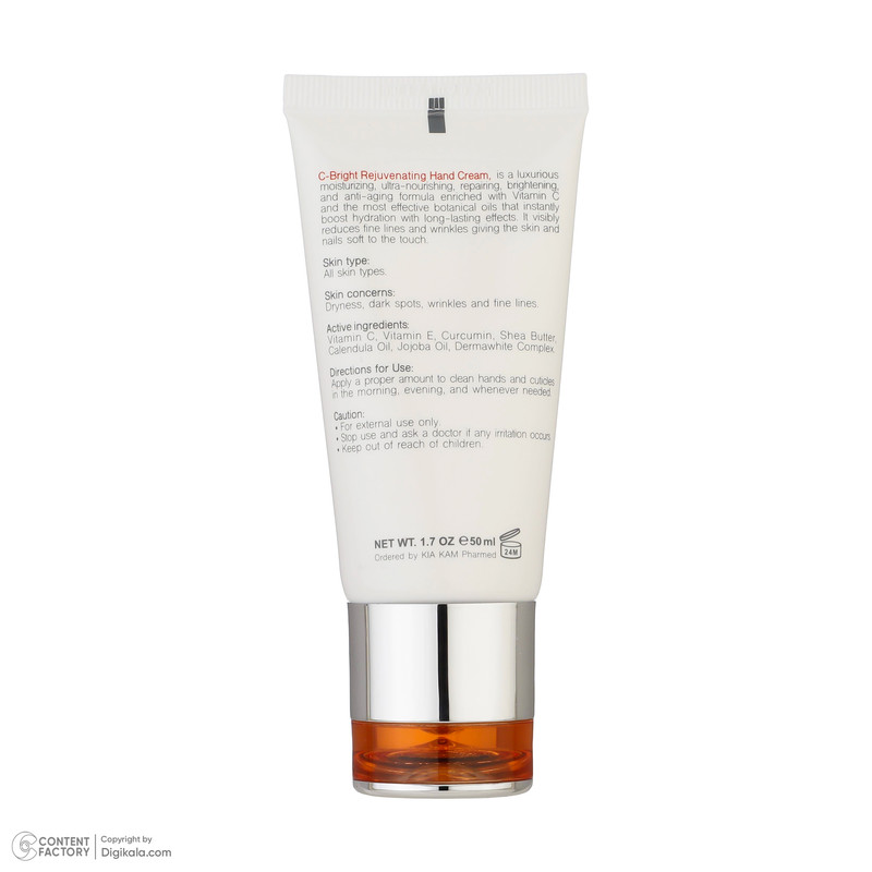 یک رطوبت رسان فوق العاده مغذی، ترمیم کننده روشن کننده و ضد پیری پوست است. این محصول با خاصیت آنتی اکسیدانی قوی و آبرسانی فوری با ماندگاری بالا، باعث کاهش خطوط و چروک های پوست دست شده و باعث لطافت و زیبایی و جوانسازی آن می شود. این محصول حاوی کمپلکس غنی ویتامین C، ویتامین E و اسید فرولیک با اثر آنتی اکسیدانی و محافظتی قوی می باشد. عصاره های گیاهی درون این کرم، از جمله عصاره زردچوبه، روغن جوجوبا و روغن کالاندولا ضمن تغذیه و ترمیم پوست و رفع خشکی آن، جوانسازی شگفت انگیزی به ارمغان می آورد.