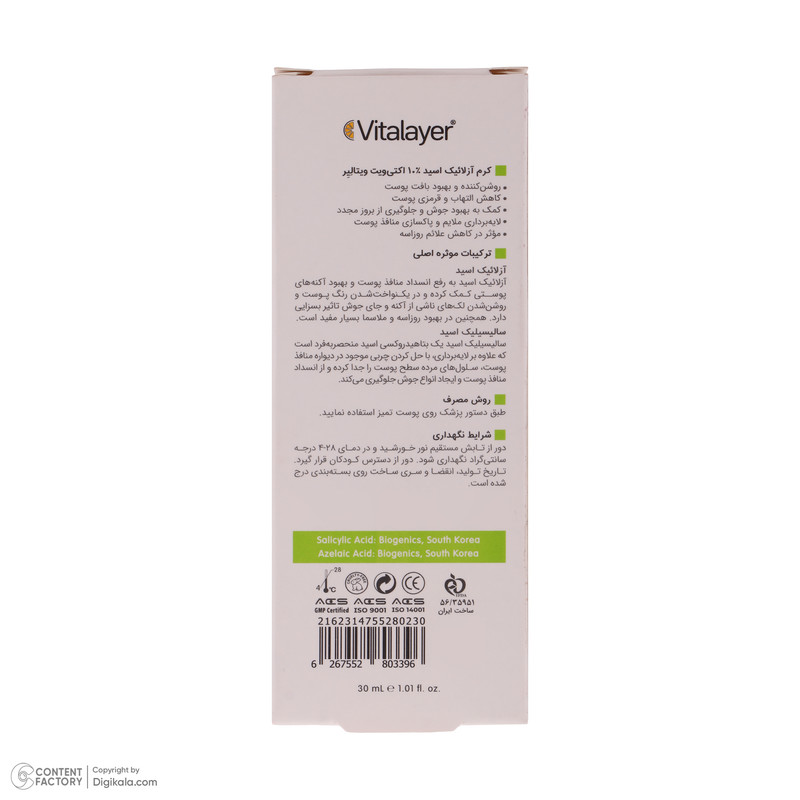 دستهبندی: کرم و ژل ضد جوشنوع کرم و ژل ضد جوش: کرمترکیبات: گلیسیرین , نیاسینامید , زینکمناسب برای: خانمها و آقایانحجم: 30 میلیلیترراهنمای استفاده : طبق دستور پزشک روی پوست تمیز استفاده نمایید.شماره مجوز : 56/35951سازگار با نوع پوست : آکنهایجنس محفظه : پلاستیکنوع محفظه : تیوبیصادرکننده مجوز : سازمان غذا و داروویتامینها و مواد معدنی موجود : زینکناحیه استفاده : صورتنمایش بیشتر