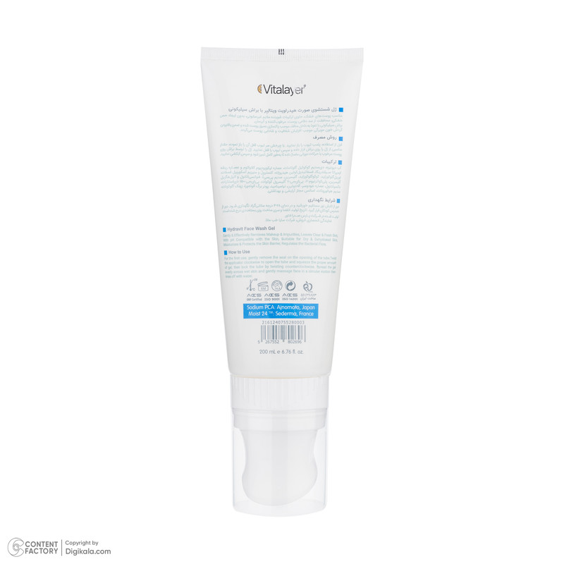 سایر توضیحات : ژل شستشوی صورت هیدراویت ویتالیر مناسب پوست خشک پاک کننده مناسبی است که بدون ایجاد حس خشکی از سد دفاعی پوست محافظت کرده و آبرسانی پوست را بر عهده دارد.