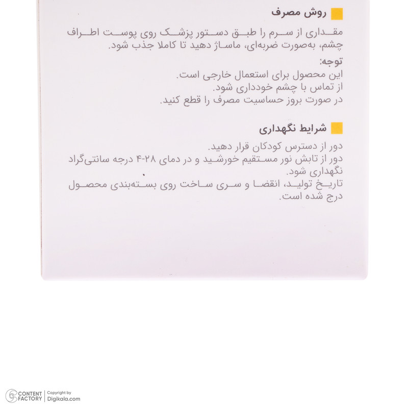 ملاحظات مصرف : این محصول تنها برای استعمال خارجی است و از بهکار بردن آن روی پوست تحریکشده یا زخمی خودداری کنید. در صورت بروز قرمزی یا سوزش، مصرف را متوقف کرده و با پزشک مشورت کنید.