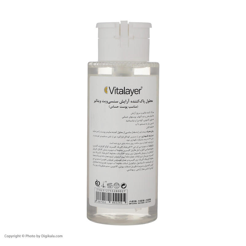 سایر توضیحات : محلول پاک کننده آرایش سنسی ویت ویتالیر مناسب پوست حساس بوده و با فرمولاسیون ملایم علاوه بر پاک کردن آلودگی از روی پوست، خاصیت التیام بخشی و ضدالتهاب نیز دارد. این محلول بدون نیاز به شستشو با آب است.