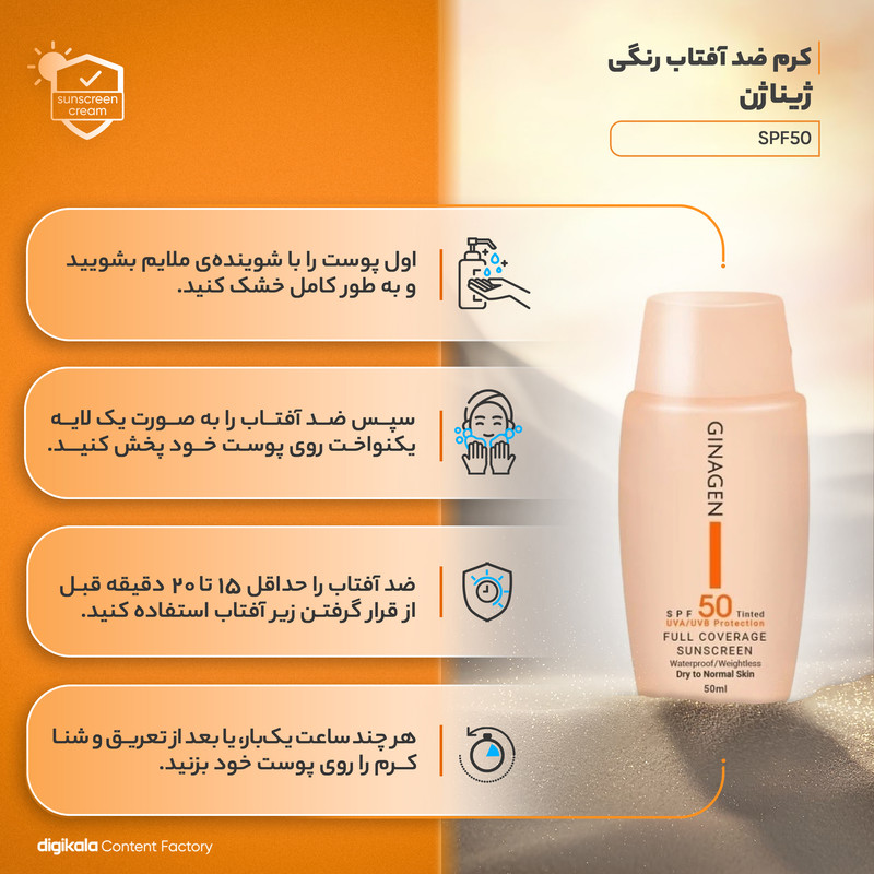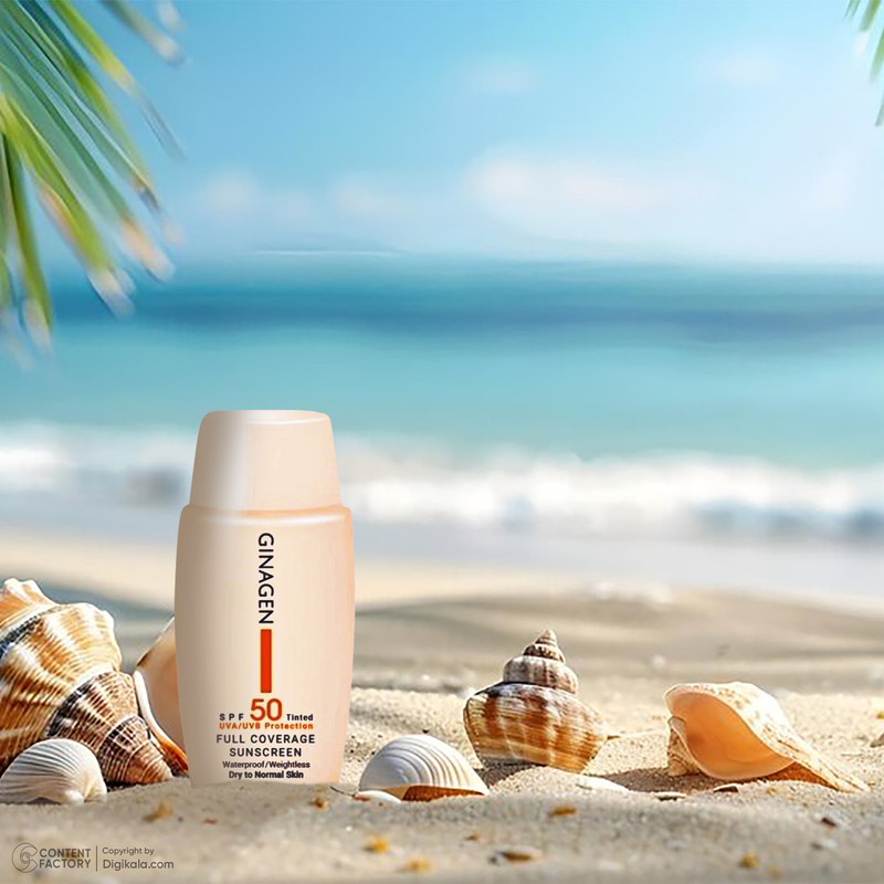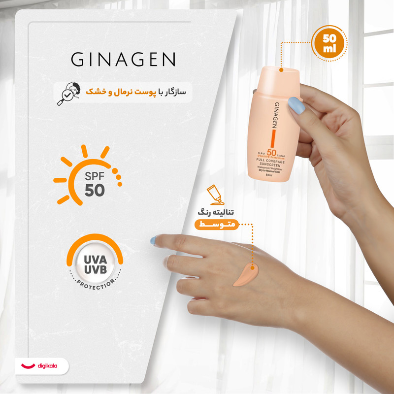 کرم ضدآفتاب رنگی ژیناژن مدل SPF50-03، مناسب پوست‌های معمولی و خشک، حجم 50 میلی‌لیتر