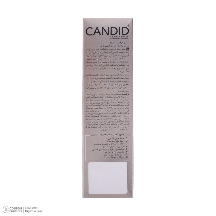 شامپو کاندید برای موهای کراتینه شده، با داشتن ترکیبات آنتی اکسیدان و ضد التهاب از جمله آلانتوئین، سبب کاهش تحریکات پوست سر و محافظت از تار ها در برابر آسیب های محیطی می گردد. این فرآورده در کاهش آسیب های دستگاه های حرارتی از جمله سشوار و اتو مو نیز موثر است. شامپو کراتینه کاندید را می توان با اطمینان از عدم ایجاد سوزش در چشم ها مصرف و درخشندگی، نرمی و لطافت را برای موها به ارمغان آورد.