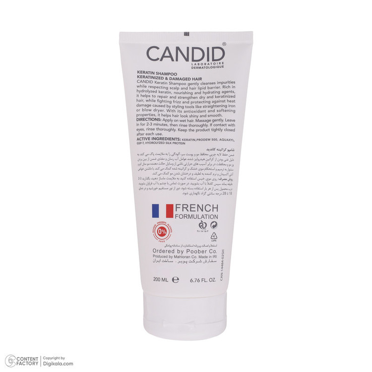 شامپو کاندید برای موهای کراتینه شده، یکی از محصولاتی است که به منظور پاکسازی موها از آلودگی و چربی توسط شرکت پوبر در ایران و تحت لیسانس فرانسه تولید شده است. شامپو کراتینه کاندید، علاوه بر موهای کراتینه شده برای موهای رنگ شده، خشک و آسیب دیده نیز مناسب است. زیرا در فرمولاسیون این شامپو از سولفات استفاده نشده و علی رغم آن سرشار از مواد مغذی و تقویت کننده می باشد.