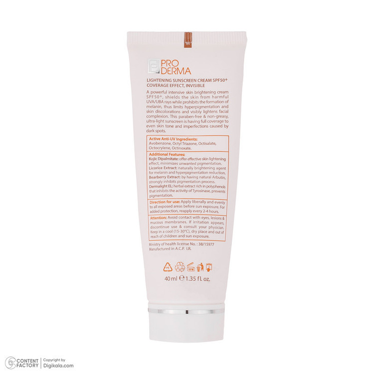 کرم ضدآفتاب پرودرما مدل SUNVEST 50، حجم 40 میلی‌لیتر