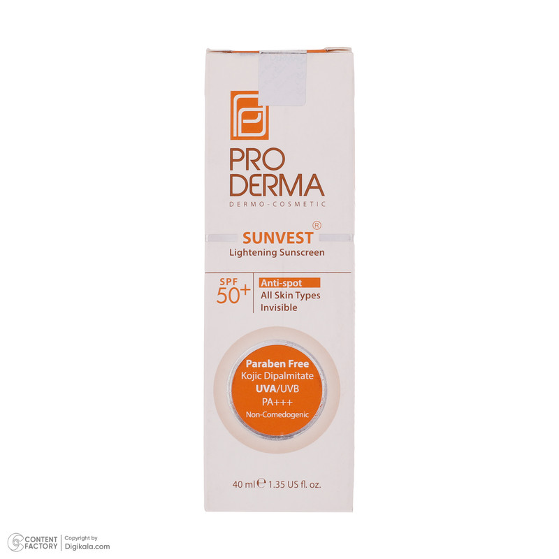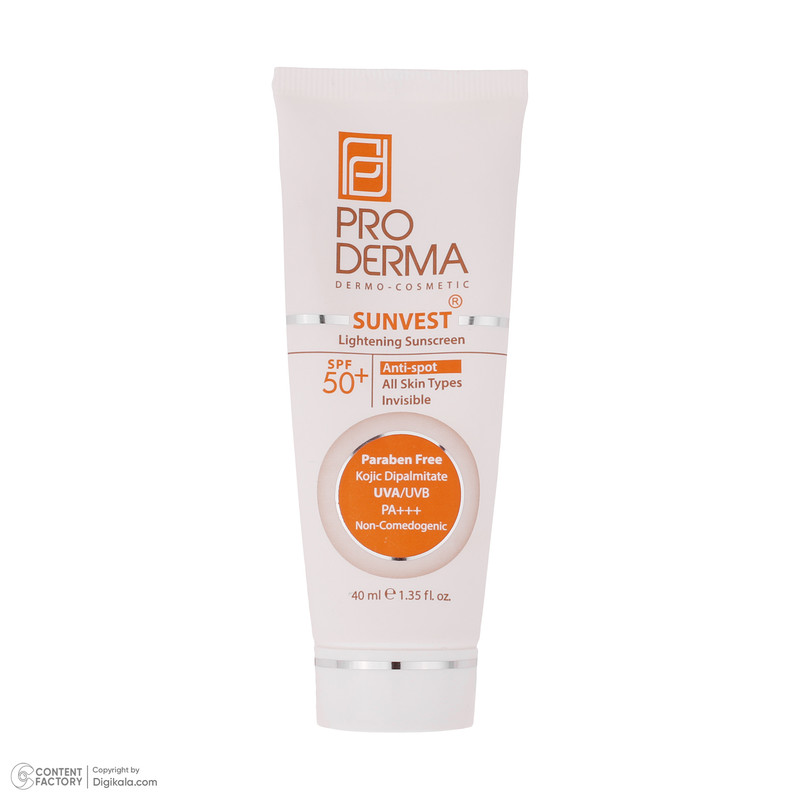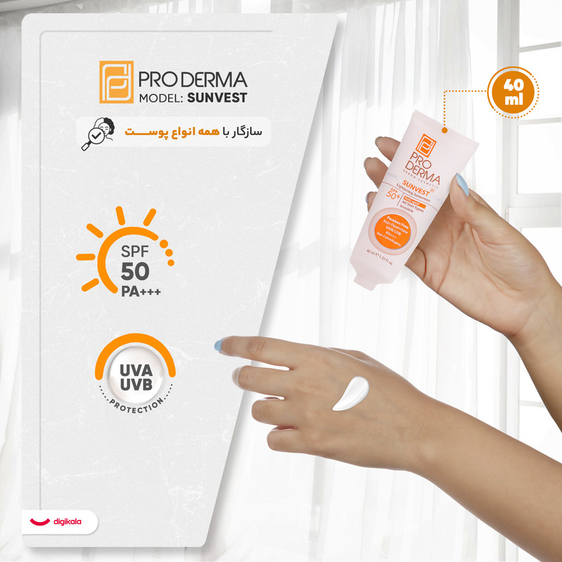 کرم ضدآفتاب پرودرما مدل SUNVEST 50، حجم 40 میلی‌لیتر