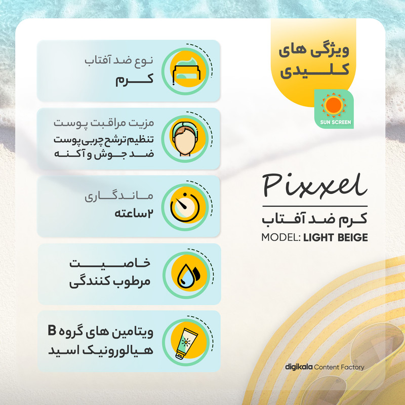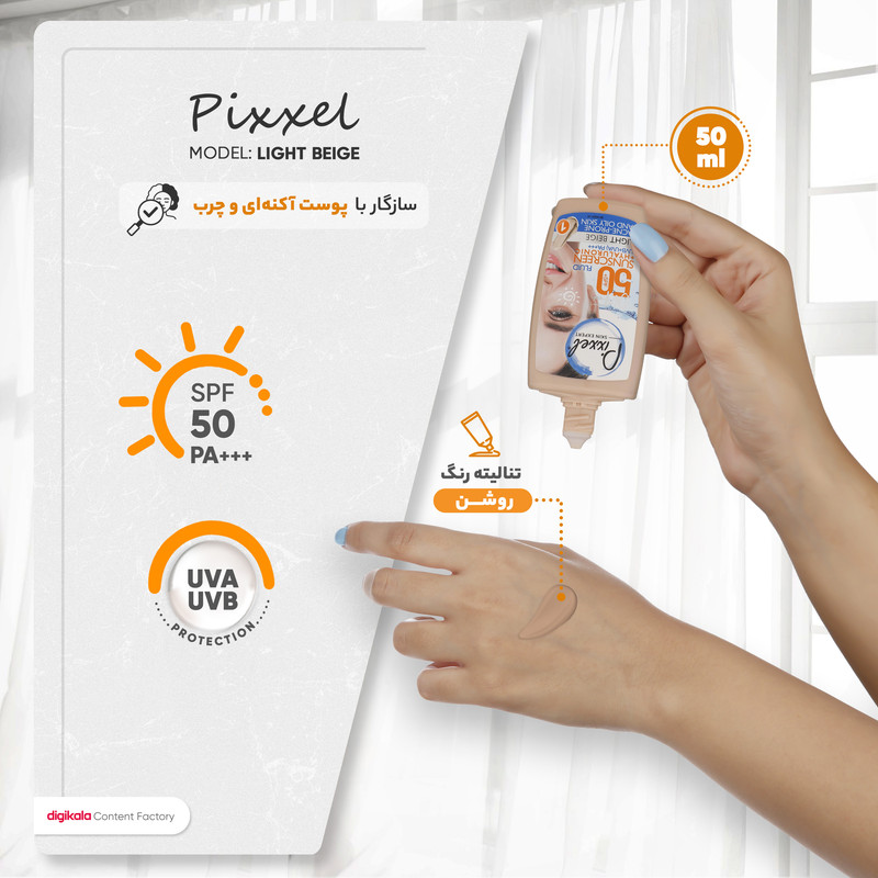 کرم ضدآفتاب رنگی پیکسل 50 SPFمدل LIGHT BEIGE مناسب برای پوستهای چرب، حجم 50 میلیلیتر