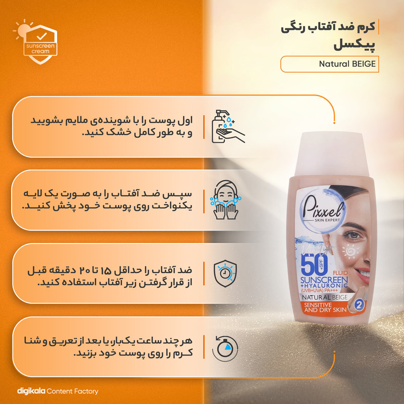 کرم ضدآفتاب پیکسل مدل Natural BEIGE، حجم 50 میلیلیتر