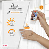 کرم ضد آفتاب رنگی پیکسل، 50 SPF، مدل GOLDEN BEIGE، مناسب پوست نرمال، خشک و حساس تنالیته رنگ تیره و حجم 50 میلیلیتر، محافظت کننده در برابر اشعه UVA و UVB، ضد حساسیت، +++ PA، آبرسان، با ماندگاری 2 ساعته