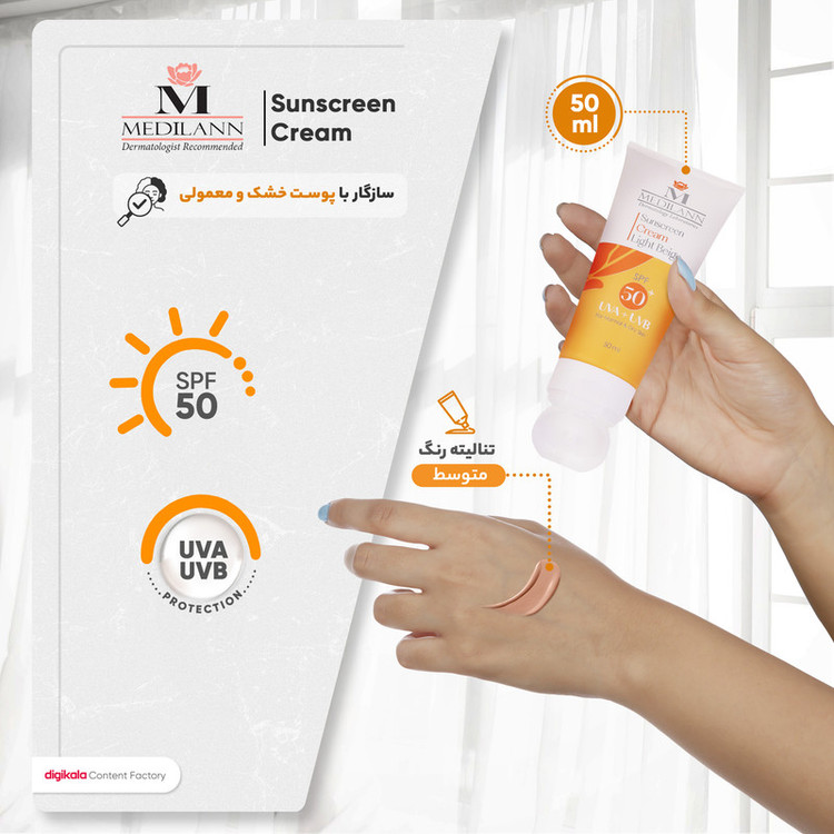 کرم ضدآفتاب رنگی مدیلن SPF50، مناسب پوست‌های خشک، حجم 50 میلی‌لیتر