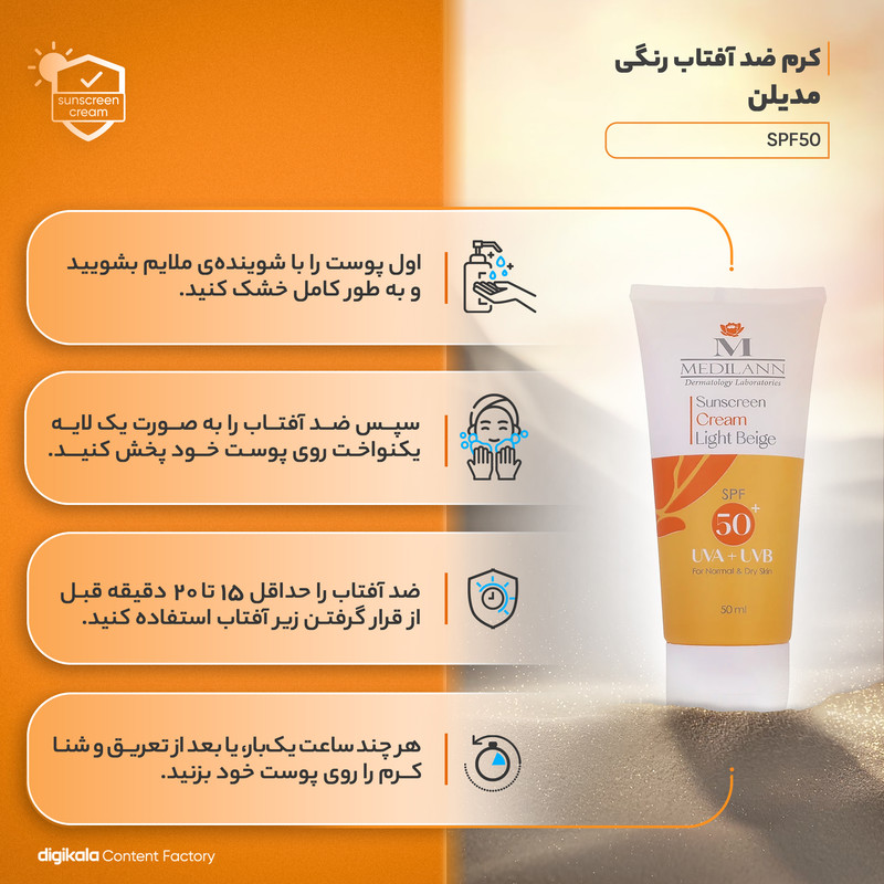 کرم ضدآفتاب رنگی مدیلن SPF50، مناسب پوست‌های خشک، حجم 50 میلی‌لیتر