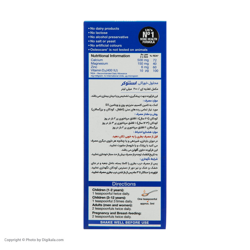سایر توضیحات: تقویت استحکام استخوان ها و دندان ها و جلوگیری از پوکی استخوان