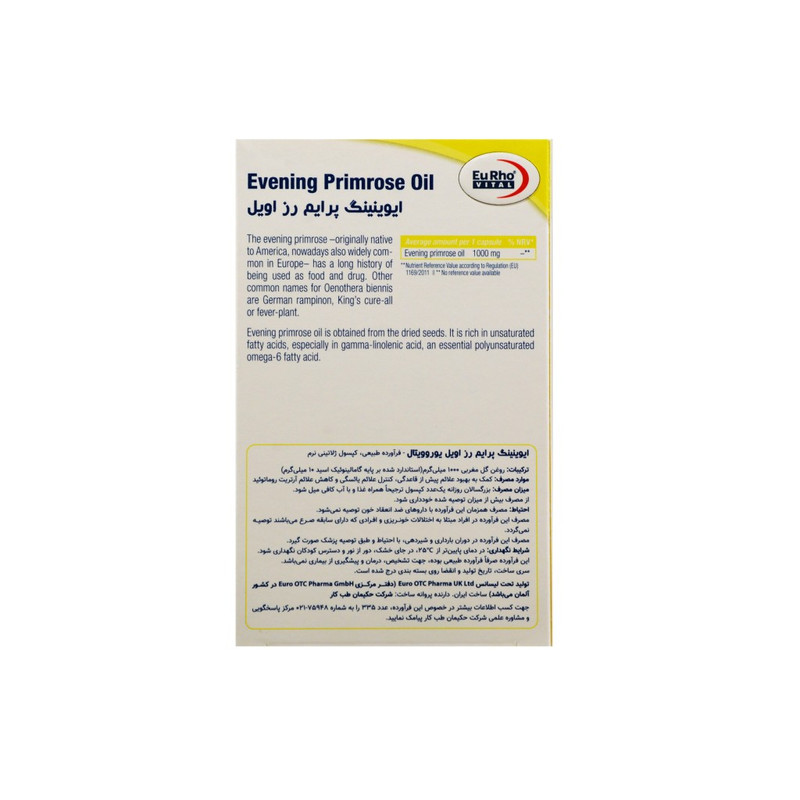 درباره محصول : ایوینینگ پرایم رز، تسکین دهنده علائم سندرم پیش از قاعدگی بهبود گرگرفتگی و سایر عوارض یائسگی با مصرف پرایم رز یوروویتال کمک به کاهش درد و التهاب آرتریت روماتوئید با دارا بودن اسیدهای چرب ضروری موثر در سلامت و استحکام پوست و کاهش التهابات پوستی حاصل از اگزما ایوینینگ پرایم رز اویل یوروویتال ، حاوی 1000 میلی گرم روغن گل مغربی