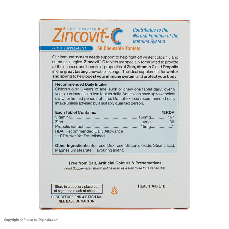 قرص جویدنی زینکوویت سی هلث اید بسته 60 عددی