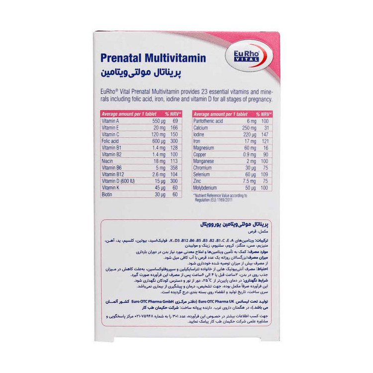 نوع ویتامین و مواد معدنی: آهن , روی , کلسیم , منیزیم , ویتامین A , ویتامین B , ویتامین C , ویتامین D , ویتامین E , ویتامین K , ویتامینهای گروه B , فولیک اسید , سلنیوم , ید