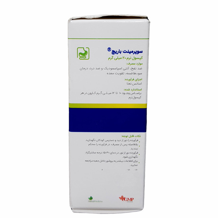 کپسول نرم سوپرمینت 20 میلی گرم باریج اسانس بسته 30 عددی