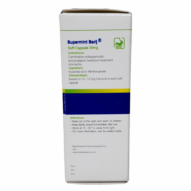 کپسول نرم سوپرمینت 20 میلی گرم باریج اسانس بسته 30 عددی