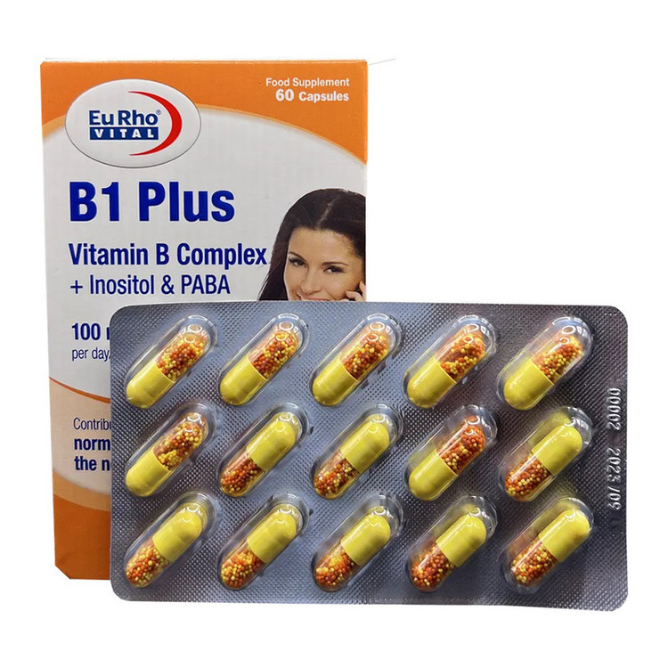 کپسول ب1 پلاس یوروویتال یک ترکیب متعادل از ویتامین B1 به همراه سایر ویتامین های گروه B می باشد که برای کمک به عملکرد نرمال سیستم عصبی طراحی شده است. کپسول B1 پلاس علاوه بر 8 ویتامین ضروری خانواده ب کمپلکس از جمله B1، B2، B6، B12، بیوتین، نیاسین، فولیک اسید و پانتوتنیک اسید، حاوی 2 ترکیب شبه ویتامین به نام های اینوزیتول و پارا آمینو بنزوئیک اسید (PABA) نیز می باشد. ویتامین های خانواده B برای پیشبرد اغلب متابولیسم های انرژی زا در بدن ضروری می باشند. از همین رو ب1 پلاس می تواند احساس ضعف و خستگی ناشی از کمبود ویتامین را برطرف نماید. ویتامین های B1، B2، B6، B12، بیوتین و نیاسین برای سنتز میلین نورون های عصبی، تولید و متابولیسم ناقل های عصبی و عملکرد نرمال سیستم اعصاب مرکزی و محیطی ضروری می باشند. ویتامین های B1، B6، B12، نیاسین و فولیک اسید برای حفظ سلامت روان حیاتی می باشند و پانتوتنیک اسید عملکرد ذهنی را تقویت می کند.