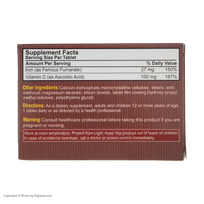 قرص ویتامین ث با آهن پیوسته برونسون بسته 30 عددی
