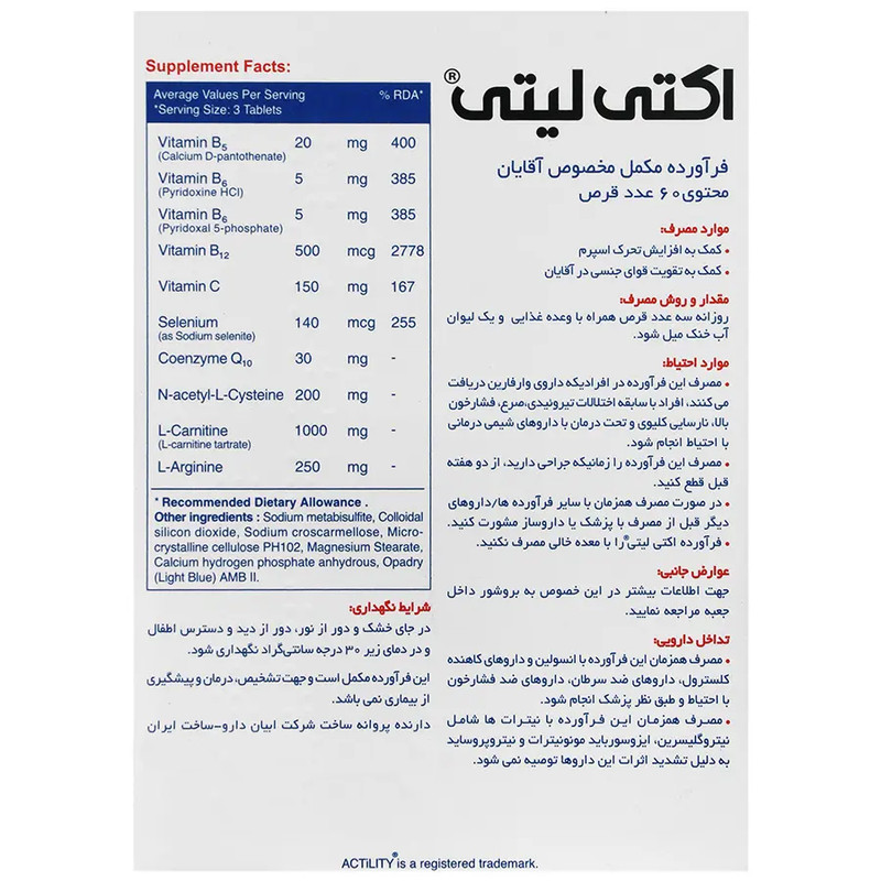 قرص اکتی لیتی ابیان دارو - بسته 60 عددی