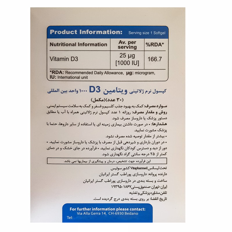 کپسول ویتامین D3 1000 ویوا تون بسته 30 عددی