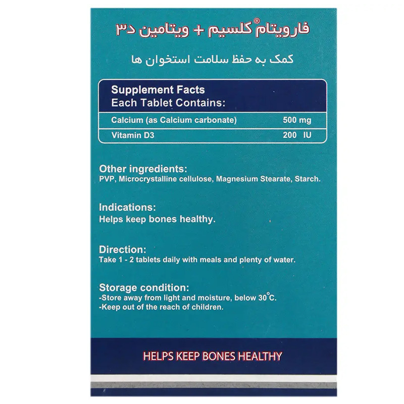 قرص کلسیم 500 میلی گرم و ویتامین د3 200 واحدی فارویتام بسته 50 عددی