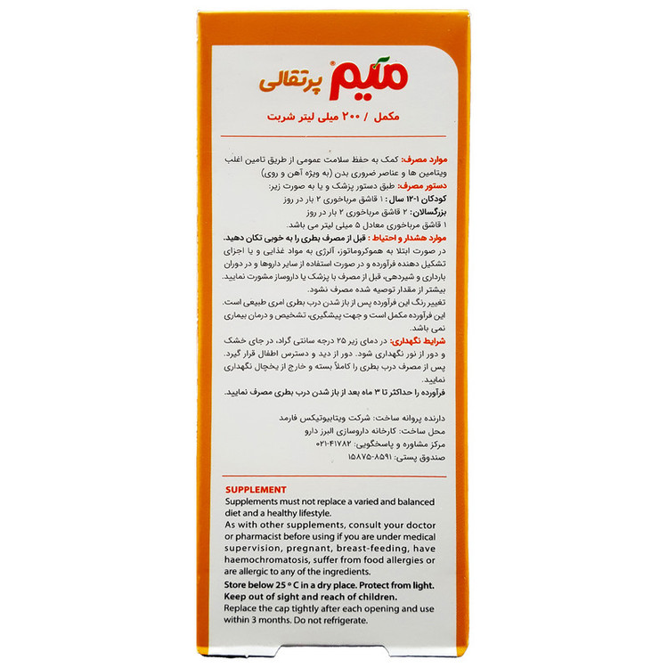 روش مصرف: کودکان 1-12 سال: 1 قاشق مرباخوری 2 بار در روز