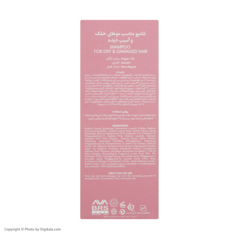 راهنمای استفاده: ابتدا مو ها را خیس نموده، سپس مقداری از شامپو را به آرامی روی مو ها ماساژ دهید و سپس آبکشی نمایید.